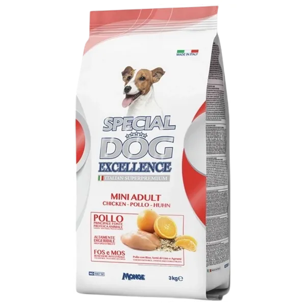 غذاء جاف كامل مخصص للكلاب الصغيرة البالغة. يجمع مكونات عالية الجودة مثل لحم الدجاج المجفف 26% والأرز 18% مع الذرة ودهون دجاج مُنقى وبروتينات حيوانية مُحللة وطحين القمح وبيض مجفف 2%، إضافة إلى بذور الكتان، لب الحمضيات، MOS وFOS للمساعدة في صحة الجلد والفراء والهضم ووظائف المناعة. بدون صبغات مضافة أو مواد حافظة صناعية