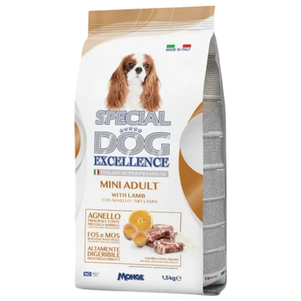غذاء كلاب جاف كامل مخصص للكلاب البالغة الصغيرة. يعتمد النظام الغذائي على لحم الغنم المجفف (19.5%) والأرز (15%)، مع الذرة والدجاج المجفف والدهون الحيوانية وقمح وبروتين حيواني مُحلل بالماء (الكبد)، لب البنجر المجفف، سلمون مجفف، بيض كامل مجفف (1%)، خميرة البيرة، بذور الكتان (1%)، لب الحمضيات المجفف (1%)، فركتوليغوساكاريدات (FOS 0.4%)، منتجات الخميرة (MOS 0.3%)، معادن ويوكا شيدجيرا. كما يحتوي على بذور الكتان كمصدر أوميغا-3 وفيتامين C من اللب الحمضي لتدعيم المناعة وصحة الجلد والفراء. لا توجد ألوان مضافة أو مواد حافظة اصطناعية