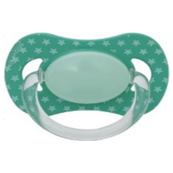 اللهاية الفسيولوجية السيليكونية من سوافنيكس بالحجم S+0M I1 باللون الأخضر صمّمت لتهدئة الرضيع بشكل آمن ودعم التطور الفموي الطبيعي. سيليكونها الطبي الناعم يمنح إحساساً لطيفاً ويرتبط بفتحات تهوية جانبية لتقليل التهيج حول فم الطفل. تصميمها الأخضر الأنيق يكمّل مظهر الرضيع، وهي معتمدة من أطباء الأسنان لتتوافق مع مراحل النمو.