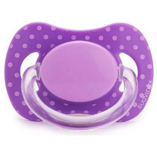 اللهاية الفسيولوجية البنفسجية من سوافنيكس مصممة للمواليد. حلمة السيليكون المتماثلة والمسطحة توضع بشكل مريح في فم الطفل، مع تقليل الضغط على اللثة. تتميز الحلمة بشكل قطرات ضيقة لتسهيل الالتقاط من الولادة. ، متوفرة في أربعة تصميمات مختلفة. معتمدة من الجمعية الإسبانية لطب أسنان الأطفال.