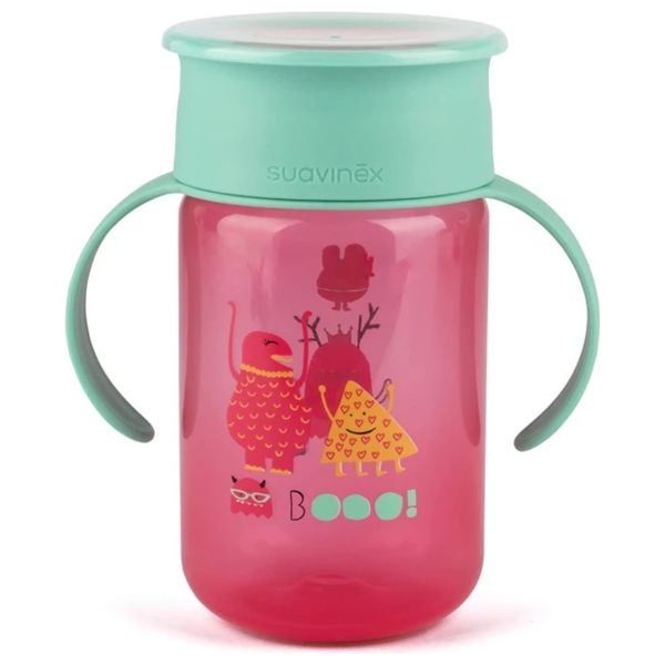 كوب تدريبي سوافنيكس 360 Boo Pink L3 بسعة 340 مل خالٍ من BPA، مع مقبضين مريحين وغطاء آمن وتصميم مضاد للتسرب. يمكن غسله في غسالة الصحون، وهو يدعم الاستخدام اليومي ويساعد الأطفال على تطوير مهارة الشرب المستقل وتقليل الفوضى.