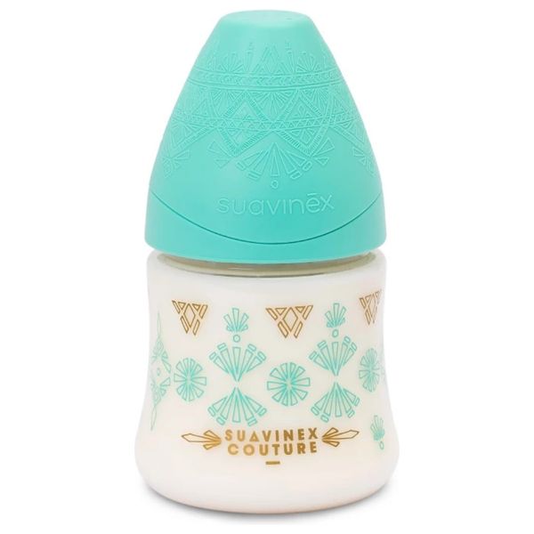 رضاعة سوافنيكس سعة 150 مل باللون الأخضر مصنوعة من بولي أميد شفاف يشبه الزجاج ومتين ضد الاستخدام اليومي. يسهّل الرقبة العريضة تحضير الرضاعة وتنظيفها، بينما يوفر الشكل المريح قبضة آمنة ومريحة. تتميز الحلمة المصنوعة من السيليكون بأنها متينة ولا تتغير لونها أو رائحتها، وتحتوي على صمامات مضادة للمغص تسمح بالتكيف مع وتيرة رضاعة الطفل. رقم الموديل: 8426420045018. السعة 150 مل مع علامات قياس لقياس كمية الرضاعة بدقة. معتمدة من الجمعية الإسبانية لطب أسنان الأطفال.