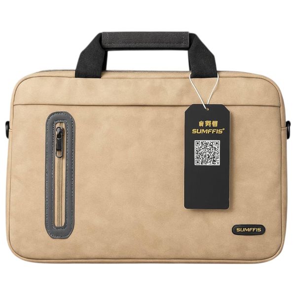 حقيبة لابتوب من سومفيس كلاسيك اللون البيج تجمع بين الأناقة والحماية بفضل خامة أوكسفورد وجلد PU، وبطانة داخلية مبطنة وجيوب متعددة لتنظيم الجهاز والملحقات. مقاومة للماء والخدوش لحماية الجهاز أثناء التنقل، وتحتوي على حزام خلفي لتثبيت الحقيبة على حقيبة السفر وحزام كتف قابل للتعديل لراحة الاستخدام اليومي. تتسع لأجهزة حتى 15.6 بوصة، مما يجعلها مثالية للعمل أو السفر.