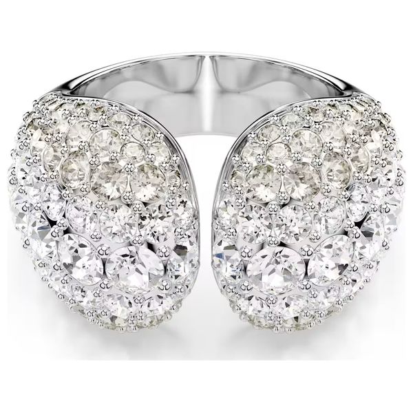 تابع لسلسلة سوبليمّا من سواروفسكي، يبرز خاتم الكوكتيل هذا بتشكيلة واسعة من الكريستالات الشفافة مثبتة على قاعدة مطلية بالروديوم. القطع الدائري يلمع من كل زاوية ليمنحك إطلالة راقية للمناسبات المسائية. المقاس 50 مريح لمعظم الأصابع.