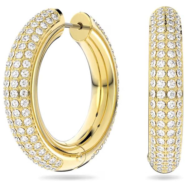 تتميز أقراط سواروفسكي دكستريا الدائرية متوسطة الحجم بتصميم متألق مرصع بالكريستال وطلاء ذهبي فاخر، مثالية لأي إطلالة، يضفي اللون الأبيض لمسة من الأناقة، مما يجعلها مثالية للمناسبات الرسمية وغير الرسمية