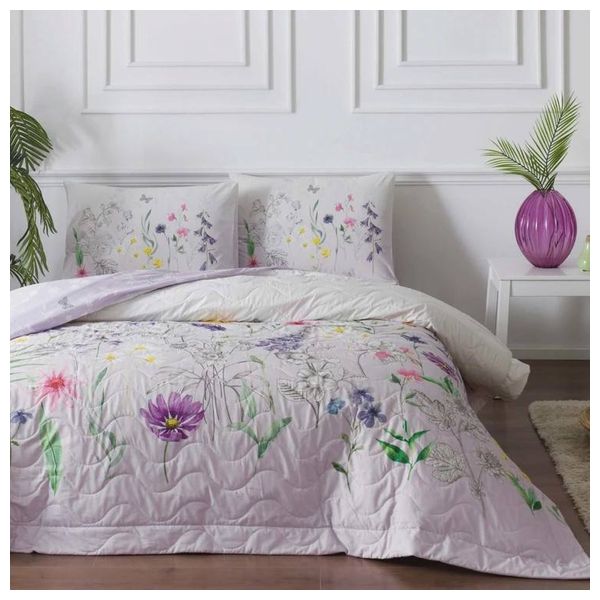 يتكون من ثلاث قطع: غطاء لحاف يعمل كغطاء للحاف، وشرشف مقاس 230 × 180 سم، وغطاء وسادة مقاس 70 × 50 سم