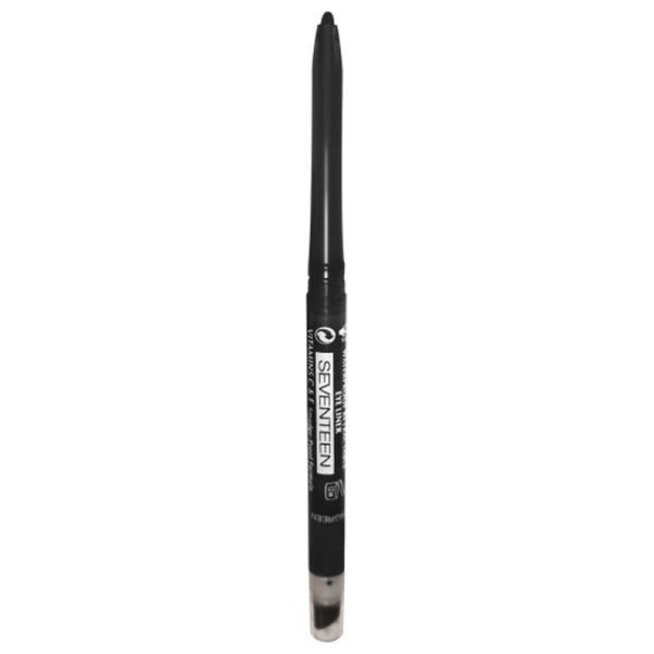 قلم كحل مقاوم للماء يحتوي على فيتامين ج, هـ, يتميز بتركيبة متطورة تجعله يدوم طوال اليوم دون تمدد أو تجمع على الجفن, يأتي مع إسفنجة في النهاية, وهي ملحق مثالي لمزج اللون وخلق عيون سموكي.