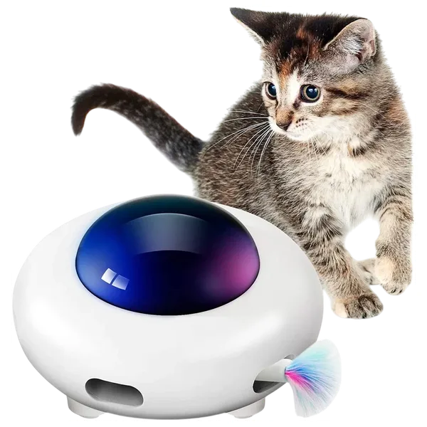 لعبة قطط تفاعلية على شكل UFO مع ريش دوّار، تعمل بالشحن عبر يو اس بي وبوضع ذكي لتخفيف الملل لدى القطط داخل المنزل. مصنوعة من مواد عالية الجودة ومتينة، غير سامة وقليلة الضجيج، سهلة الاستخدام ويمكن وضعها على الأرض، تساعد على تحفيز اللعب والنشاط وتعزيز صحة القطط.