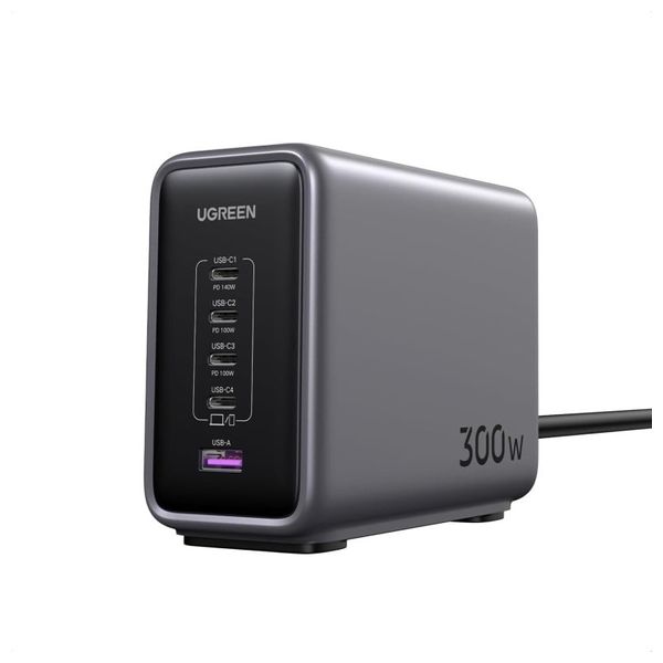 شاحن UGREEN Nexode بقوة 300 واط وتقنية GaNFast هو محطة شحن عالية الأداء مصممة لتشغيل عدة أجهزة في وقت واحد. مزود بـ 4 منافذ USB-C ومنفذ USB-A واحد، يوفر توزيع طاقة ذكي مع دعم PD 3.1، مما يجعله قادرًا على شحن اللابتوبات والأجهزة اللوحية والهواتف الذكية بكفاءة عالية. تضمن تقنية GaNFast حجمًا مضغوطًا وحرارة أقل، بينما يحمي نظام Thermal Guard أجهزتك من الحرارة الزائدة أو الشحن الزائد. مثالي لمكتب يتطلب شحنًا سريعًا ومتعدد الأجهزة.