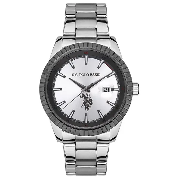 ساعة رجالية بتصميم كلاسيكي أنيق باللون الرمادي المعدني، تأتي بعلبة دائرية من الفولاذ بحجم 43 ملم وسمك 10 ملم، مع قرص رمادي معدني تناظري، تعمل الساعة بحركة كوارتز دقيقة وتتميز بمقاومة للماء حتى 5 ATM، السوار مصنوع من الفولاذ باللون الرمادي المعدني بطول 20 سم وعرض 22×20 ملم