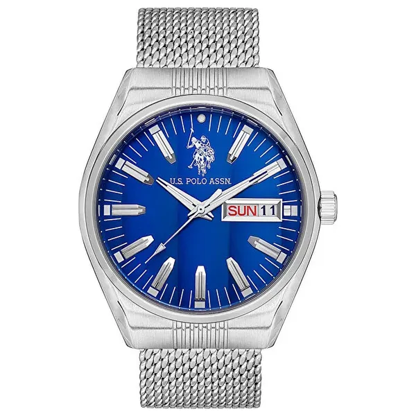 ساعة رجالية بتصميم رياضي، مع علبة دائرية من الفولاذ باللون الرمادي المعدني بحجم 43 ملم وسمك 12 ملم، وقرص أزرق تناظري، تعمل الساعة بحركة كوارتز، ومقاومة الماء حتى 5 ATM، السوار من الخيزران باللون الرمادي المعدني بعرض 22×22 ملم وطول 20 سم، تشمل الوظائف عرض اليوم والتقويم، الوزن 125 غم