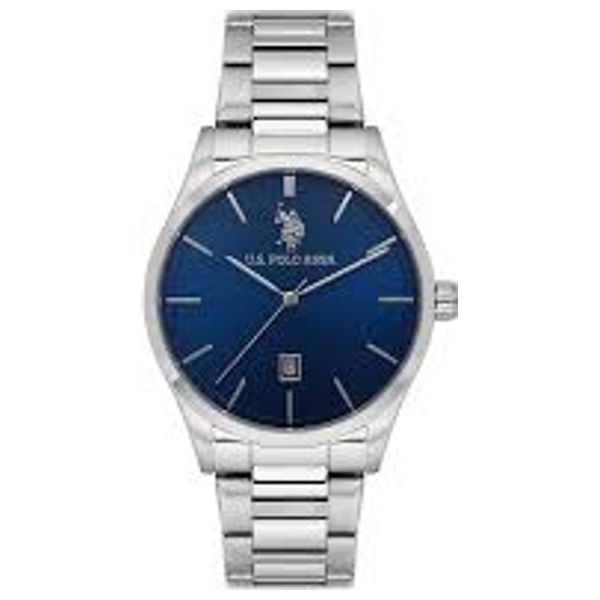 ساعة رجالية بتصميم كلاسيكي، تأتي الساعة بعلبة 42 ملم وسمك 10 مم من الفولاذ باللون الرمادي المعدني، مع قرص أزرق تناظري وسوار فولاذي باللون الرمادي المعدني، تعمل الساعة بحركة كوارتز، ومقاومة الماء حتى 5 ATM، تشمل وظائف التقويم