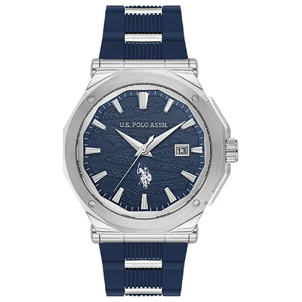 ساعةرجالية بتصميم رياضي أنيق، تعمل بآلية كوارتز دقيقة، وتأتي بعلبة دائرية من الفولاذ باللون الرمادي المعدني بقطر 43 مم وسماكة 12 مم. تتميز بزجاج معدني وميناء أزرق، إضافةً إلى سوار سيليكون أزرق بطول 21 سم وعرض 24×20 مم. الساعة مقاومة للماء حتى 50 متر، وتحتوي على تقويم يومي