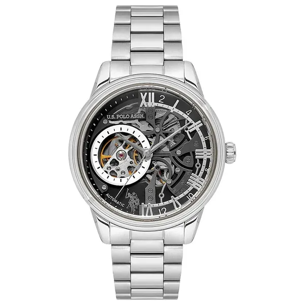 ساعة رجالية بتصميم كلاسيكي أنيق، تعمل بآلية أوتوماتيكية، وتأتي بعلبة دائرية من الفولاذ باللون الرمادي المعدني بقطر 42 مم وسماكة 15 مم. تتميز بزجاج معدني وميناء أسود، إضافةً إلى سوار فولاذي رمادي معدني. الساعة مقاومة للماء حتى 50 متر