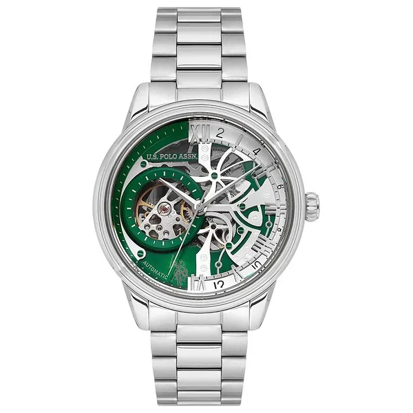 ساعة رجالية بتصميم كلاسيكي أنيق، تعمل بآلية أوتوماتيكية، وتأتي بعلبة دائرية من الفولاذ باللون الرمادي المعدني بقطر 42 مم وسماكة 15 مم. تتميز بزجاج معدني وميناء أخضر، إضافةً إلى سوار فولاذي رمادي معدني. الساعة مقاومة للماء حتى 50 مترأ