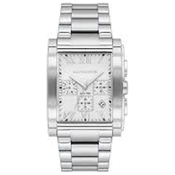 ساعة رجالية بتصميم كلاسيكي أنيق، تعمل بآلية كوارتز دقيقة، وتأتي بعلبة مستطيلة من الفولاذ باللون الرمادي المعدني بقطر 37×46 مم وسماكة 12 مم. تتميز بزجاج معدني وميناء رمادي معدني، إضافةً إلى سوار فولاذي رمادي معدني. الساعة مقاومة للماء حتى 50 متر وتحتوي على تقويم يومي