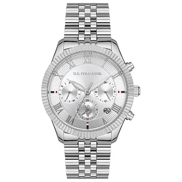 ساعة نسائية، تعمل بآلية كوارتز دقيقة، وتأتي بعلبة دائرية من الفولاذ باللون الرمادي المعدني بقطر 38 مم وسماكة 10 مم. تتميز بزجاج معدني وميناء رمادي معدني، إضافةً إلى سوار فولاذي رمادي معدني بطول 17 سم وعرض 20×18 مم. الساعة مقاومة للماء حتى 50 متر، وتحتوي على تقويم يومي ووظيفة عرض 24 ساعة