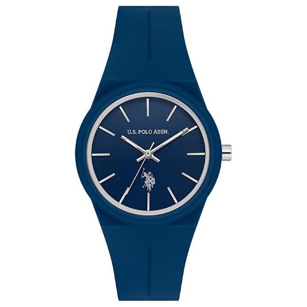 ساعة يد نسائية من يو.إس. بولو أسن تجمع سوار سيليكون أزرق مع ميناء أزرق لتصميم رياضي وعملي، العلبة بقطر 35 مم تحتوي حركة كوارتز تحت زجاج معدني واضح، ما يوفر قراءة دقيقة للوقت