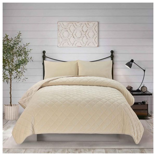 يتكون من ثلاث قطع: مفرش سرير بقياس 250×230 سم، ووسادتين بمقاس 50×75 سم، مصنوع من مخمل بوليستر يمنحك راحة دافئة وسهولة في العناية