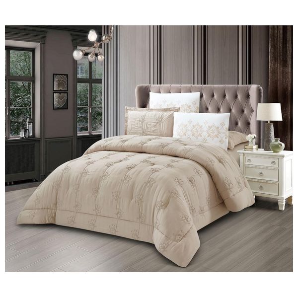 مصنوعة من ميكروفايبر الناعم والمتين مع تطريز أنيق. تتضمن لحافًا بحجم 180×240 سم، ملاءة 120×200 سم بعمق 35 سم، وغطاء مخدة 50×75 سم بحواف مغلقة