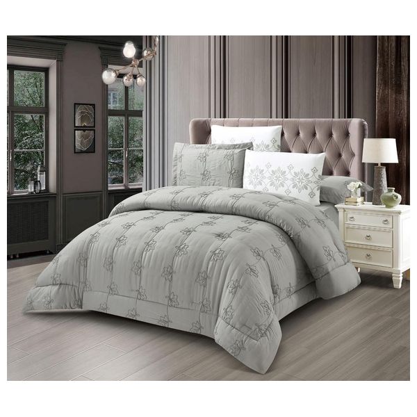 مصنوعة من ميكروفايبر الناعم والمتين مع تطريز أنيق. تتضمن لحافًا بحجم 180×240 سم، ملاءة 120×200 سم بعمق 35 سم، وغطاء مخدة 50×75 سم بحواف مغلقة