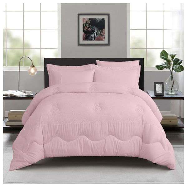طقم لحاف فالنتيني ميكروفايبر، مكوّن من 4 قطع: لحاف 180×240 سم، شرشف 120×200+35 سم، غطاء وسادة 50×80 سم، وغطاء مخدة زخرفي 50×80+5 سم