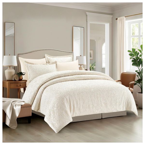 طقم لحاف فالنتيني الملكي، مكوّن من 6 قطع: لحاف 260×230 سم، ملاية سرير 200×200+30 سم، غطاءان مخدة زخرفي 50×75+5 سم، و2 أغطية مخدات 50×75 سم