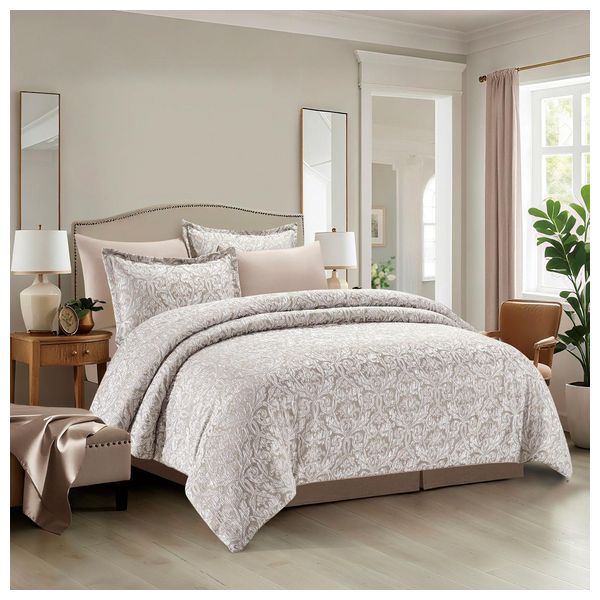 طقم لحاف فالنتيني الملكي، مكوّن من 6 قطع: لحاف 260×230 سم، ملاية سرير 200×200+30 سم، غطاءان مخدة زخرفي 50×75+5 سم، و2 أغطية مخدات 50×75 سم