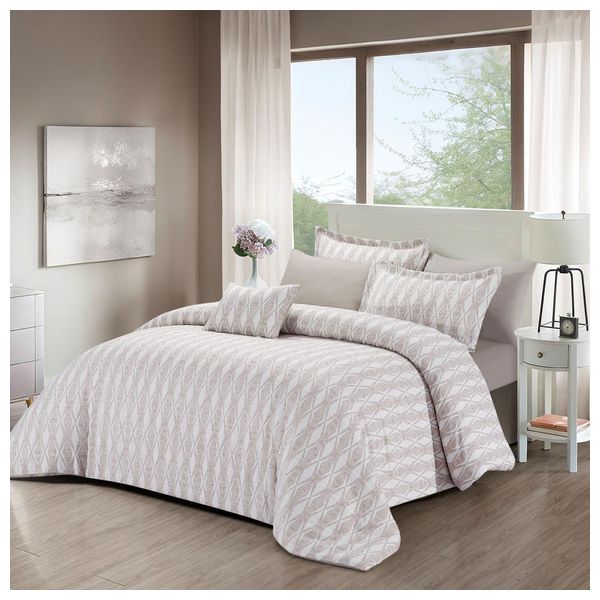 طقم لحاف فالنتيني كينغ 7 قطع، يشمل لحاف 260×230 سم، ملاية 200×200+30 سم، مخدتان زخرفيتان 50×75+5 سم، 2 أغطية مخدات 50×75 سم، ووسادة طولية 35×50 سم