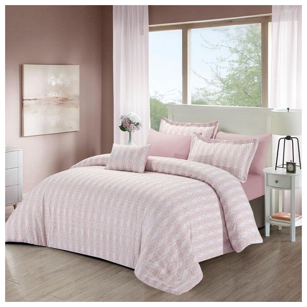 طقم لحاف فالنتيني كينغ 7 قطع، يشمل لحاف 260×230 سم، ملاية 200×200+30 سم، مخدتان زخرفيتان 50×75+5 سم، 2 أغطية مخدات 50×75 سم، ووسادة طولية 35×50 سم