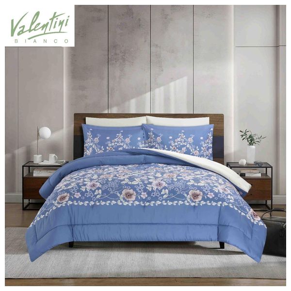 مصنوعة من ميكروفايبر مطبوع بوزن 300 جم/م² لتوفير نعومة ومتانة وسهولة في العناية. تشمل بطانية بحجم 260×240 سم، ملاءة مشدودة 200×200+35 سم، كيسَي مخدات بقياس 50×75 سم، وغطائي مخدات 50×75+5 سم