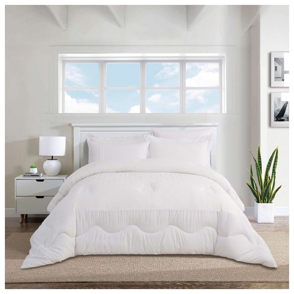 طقم فالنتيني ميكروفايبر كينغ مكون من 6 قطع: لحاف 260×240 سم، ملاءة مطاطية 200×200+35 سم، غطاء مخدة 50×80 سم، وغطائي وسادة 50×80+5 سم، مصنوع من ميكروفايبر ناعم ومتين وسهل العناية ومقاوم للتجاعيد