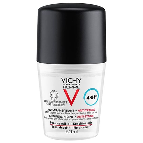 تمتع بحماية تدوم طويلاً مع مزيل العرق رول أون فيشي أوم 48 ساعة المضاد للبقع. تم تركيب هذا المنتج خصيصاً للرجال ذوي البشرة الحساسة، حيث يوفر حماية فعالة ضد التعرق والروائح لمدة تصل إلى 48 ساعة. تقنيته الفريدة تمنع ظهور البقع الصفراء والبيضاء على الملابس، كما تحمي الأقمشة من التصلب. تركيبته اللطيفة والخالية من الكحول مضادة للحساسية ومصممة لتهدئة البشرة، مما يتركها منتعشة ومريحة وجافة طوال اليوم.