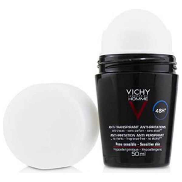 مزيل عرق رول-أون من فيشي للرجال يوفر حماية حتى 48 ساعة من التعرق. صُمم للبشرة الحساسة، وهو خالٍ من العطور ومناسب للبشرة الحساسة. يسهّل تطبيقه رول-أون دون ترك آثار على الملابس. مصنوع في فرنسا ويحتوي على كلوروهيدرات الألومنيوم كمادة فعالة مضادة للتعرق.