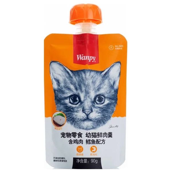 كافأة لذيذة للقطط، تجمع بين نكهة الدجاج الطرية وسمك القد الغني بالبروتين. يتميز بقوامه الكريمي السهل اللعق، مما يجعله مثاليًا لتقديمه كوجبة خفيفة أو مكمل غذائي للقطط