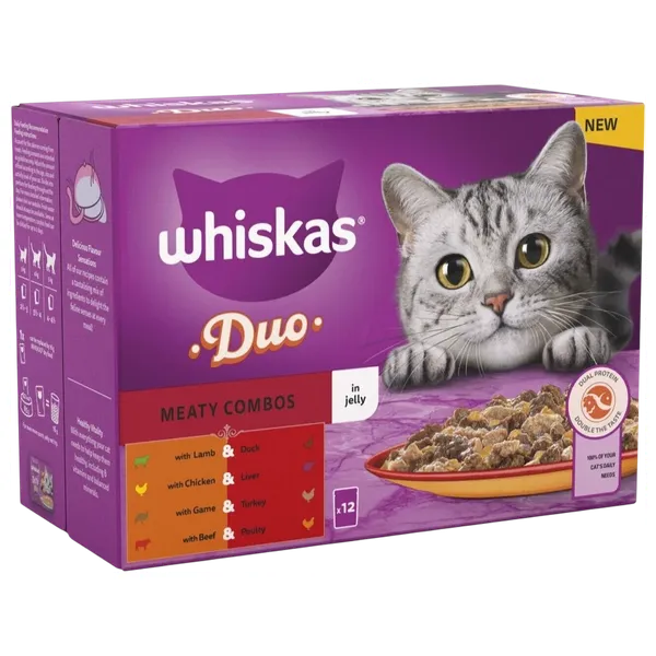 مجموعة وجبات رطبة متكاملة للقطط، تحتوي على قطع طرية من اللحم أو السمك في جيلي. كل كيس يُساعد على ترطيب أجسام القطط بفضل محتواه العالي من الرطوبة. مُصممة لتلبية جميع احتياجات القطط البالغة من الطعام