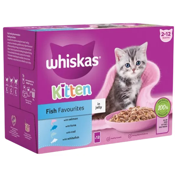 ويسكاس طعام للقطط الصغيرة المفضلات السمكية - 12 قطعة