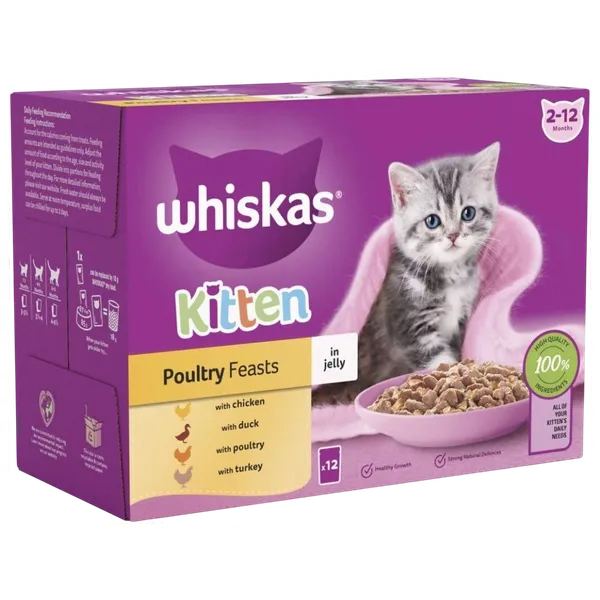 ويسكاس طعام للقطط الصغيرة وليمة الدواجن بالجيلي - 12 قطعة