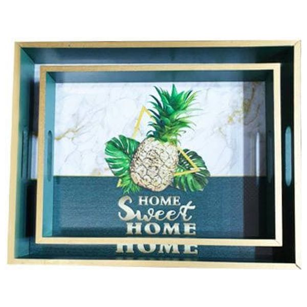 سيت صواني يحتوي على قطعتين صغيرة وكبيرة بتصميم مميز مصنوعة من الخشب المتين بمقبض مزدوج وقاعدة داخلية مغلفة بطبقة بلاستيكية شفافة