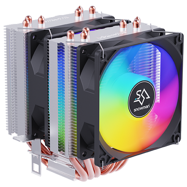 مبرد هوائي Snowman MX4 بثلاث مراوح لتبريد ممتاز للمعالجات، مع أنابيب نحاسية مباشرة وتصميم فعال لضمان تدفق هواء هادئ وقوي.