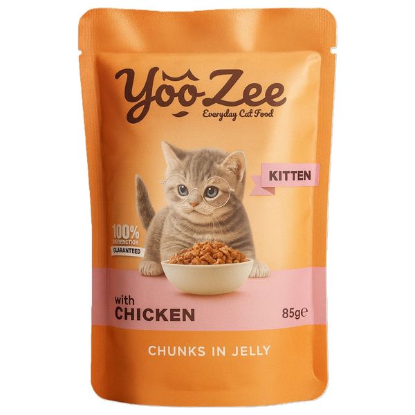 طعام القطط الصغيرة يوزي مع قطع الدجاج في الجيلي - 85 غم
