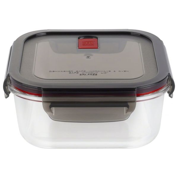 زويلينغ غوستو – جرة تخزين زجاجية مربعة 1100 مل، محكمة الإغلاق ومقاومة للتسرب، مناسبة للثلاجة والفريزر والميكروويف، سهلة التنظيف في غسالة الصحون.