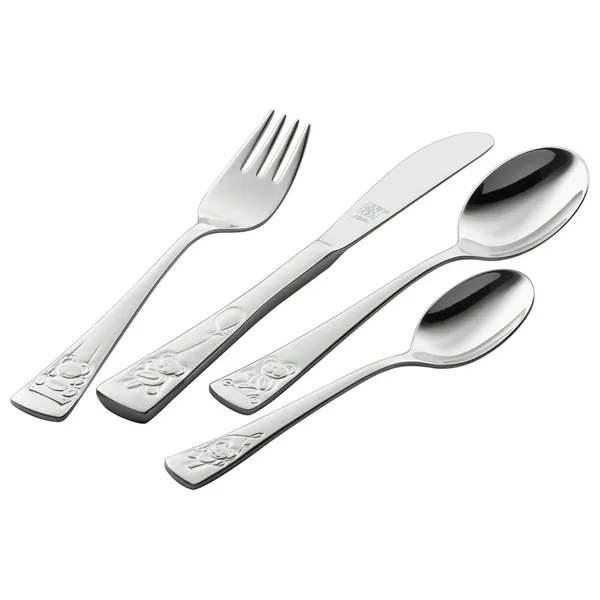 هذا طقم أدوات المائدة للأطفال تيدي من زويلينغ (4 قطع). مناسب للأطفال من عمر 3 سنوات فما فوق، مصنوع من ستانلس ستيل 18/10 عالي الجودة، مما يجعله متينًا وقابلًا للغسل في غسالة الصحون. تم تصميم الأدوات لتناسب الأيدي الصغيرة لضمان تناول الطعام بأمان وراحة. السكين ذو حافة غير حادة، والشوكة ذات أسنان مستديرة. يتميز الطقم برسومات جذابة تجعل أوقات الطعام أكثر متعة للأطفال.