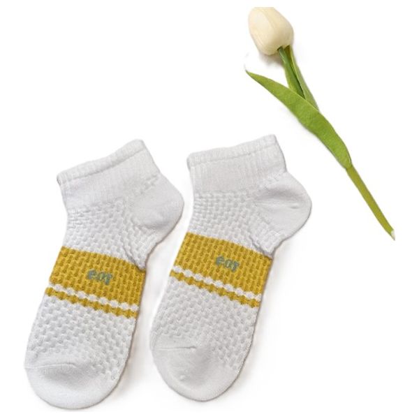 Cotton knit socks with a honeycomb texture and a yellow "POP" band, providing excellent comfort and breathability for everyday use.