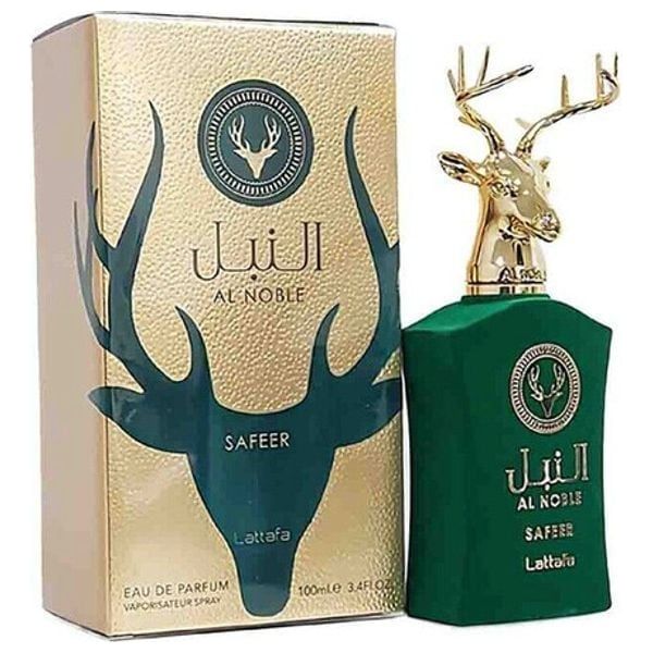 Al Noble Safeer by Lattafa is a unisex Eau de Parfum with opening notes of Artemisia and Bergamot, a herbal heart, and a warm base of Cedar, Sandalwood, Vetiver, Amber, Vanilla, and Musk.