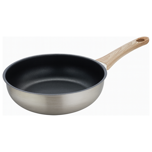 Stainless steel frying pan, 26 cm in diameter and 6 cm in depth, non-stick surface for easy cooking and faster cleaning, with a comfortable wooden handle and thermal insulation, and even heat distribution for all types of stoves