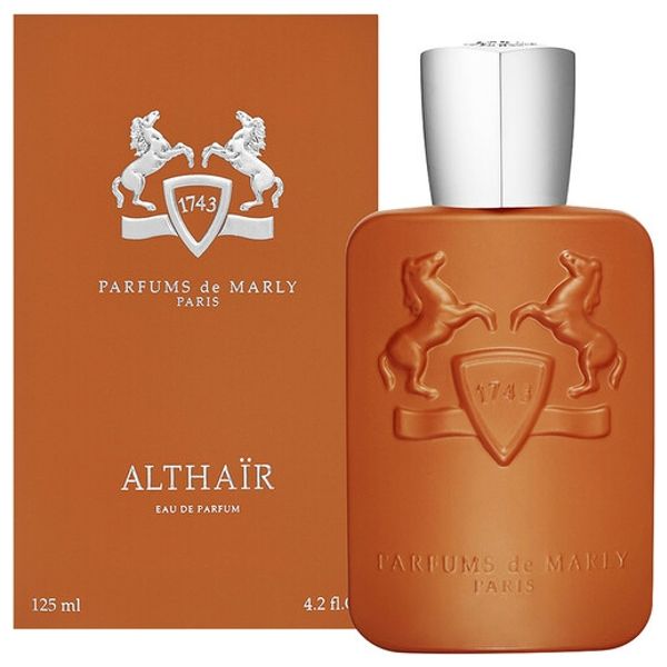 Althaïr by Parfums de Marly for Men is a spicy, oriental-woody EDP with top notes of cinnamon, bergamot, cardamom and orange blossom; heart notes of bourbon vanilla and elemi resin; and a base of musk, ambroxan, praline, and guaiac wood. The 125 ml bottle offers a lasting presence for evening and formal wear.
