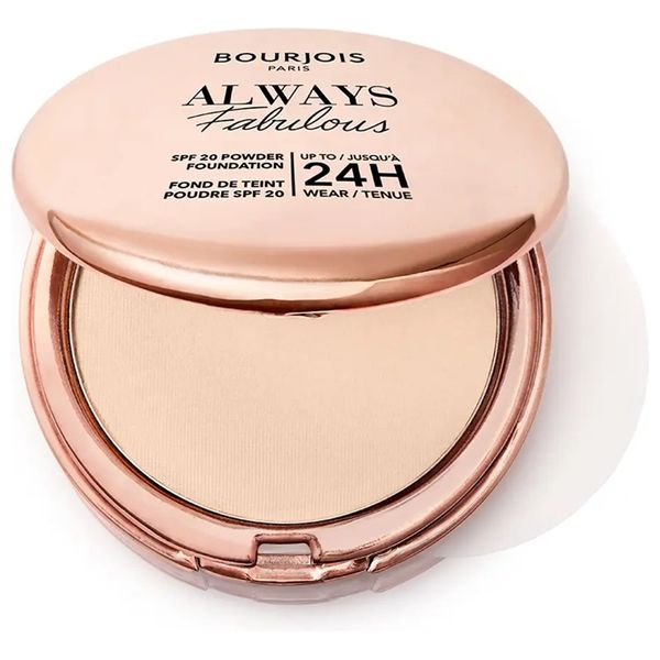 A powder characterized by a soft formula that works to unify skin tone and cover minor blemishes, with a sun protection factor of 20, suitable for all skin types.