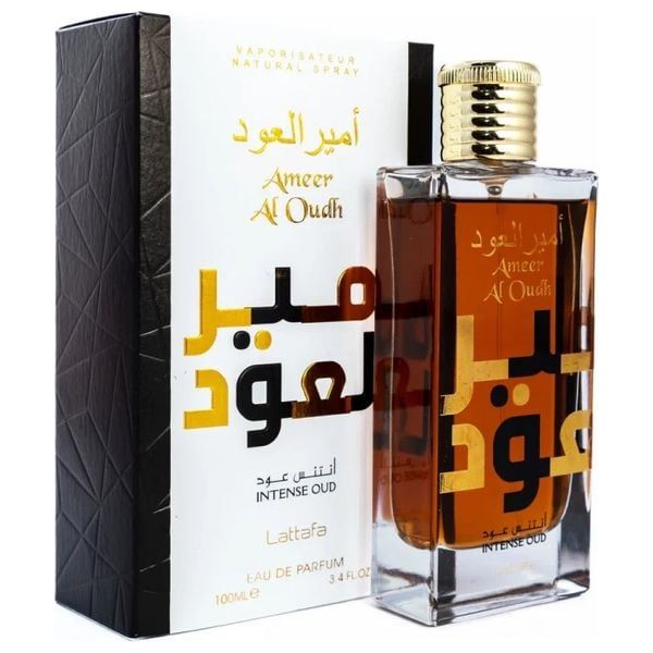 Lattafa's Ameer Al Oud Intense Oud is a unisex Eau de Parfum that opens with woodsy notes and agarwood (oud). The heart blends vanilla and sugar, while the base combines oud, sandalwood, and herbal notes for a warm, long-lasting fragrance.