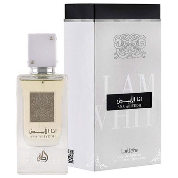 Ana Abiyedh by Lattafa is a unisex Eau de Parfum (60 ml) opening with White Musk and Nagarmotha, followed by a heart of Vanilla, Saffron, and Cardamom, and a base of Tonka Bean and Guaiac Wood.